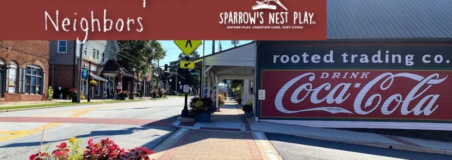 First, it is a chance to meet and serve our community. Membership in a place and kinship with its people is a core value at Sparrow’s Nest Play. We cherish any opportunity we can to share our resources and values with our neighbors. We’ve not yet attended an event downtown where we didn’t have great conversations about the benefits of nature play.